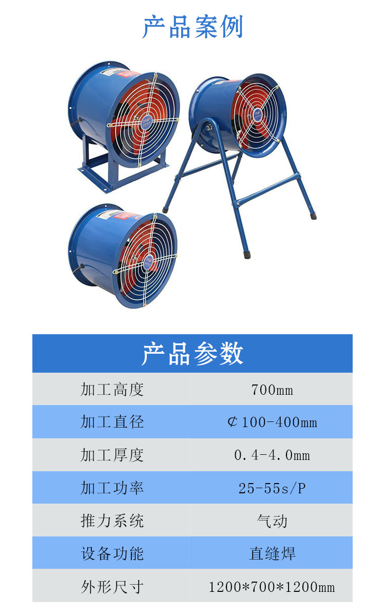 本文介绍的设备是用于圆管风机的产品加工,首先将工件焊接处气动压紧在焊接主梁中间,通过一个十字架焊枪微调装置,然后实现自动起弧直线走枪,一次性将工件直缝焊接完成。该机焊接速度连续可调,使焊枪行走匀速无抖动,从而保证了对工件的高质量焊接。(公司根据客户需求,为客户量身定制适合的设备,欢迎新老客户咨询了解)